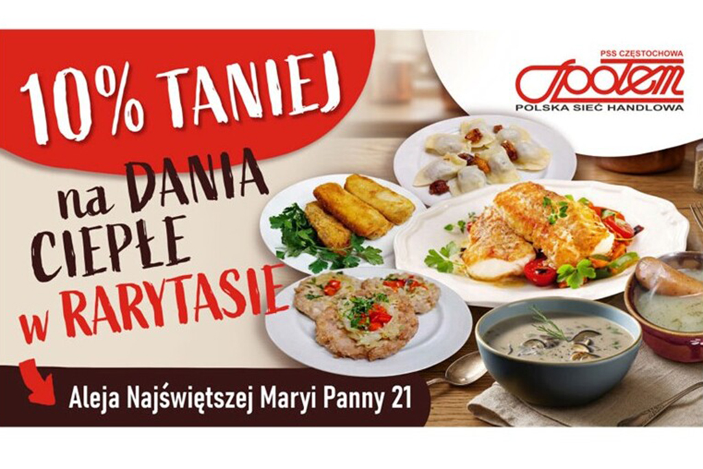 Poznaj smak domowej kuchni w sercu Częstochowa! Sklep Rarytas Społem zaprasza na pyszne, świeże i sycące dania na ciepło – idealne na szybki obiad w ciągu dnia. Codziennie znajdziesz tu tradycyjne potrawy przygotowywane z dbałością o smak i jakość – aromatyczne zupy, domowe obiady oraz klasyczne dania, które przypominają najlepszą kuchnię domową. To doskonały wybór dla tych, którzy cenią wygodę, przystępną cenę i sprawdzony smak.
